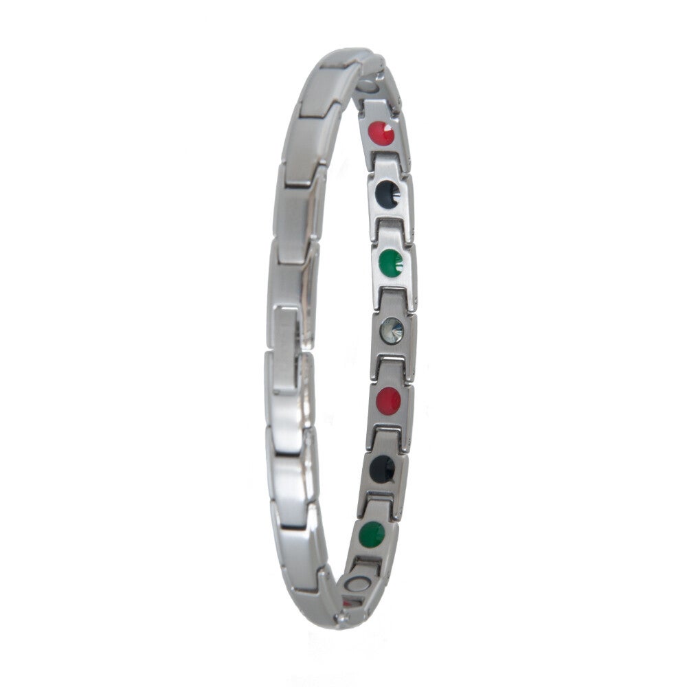 Armband gemaakt van edel (chirurgisch) mat staal. Elementen 4 in 1: Neodymium magneten, (Puur) Germanium, Toermalijn, FIR Far Infra Red. Met easy link voor het gemakkelijk aanpassen van de juiste maat. Maten: XS=16,8cm, S=17,8cm, M=18,7cm, L=19,8cm, XL=20,8cm, XXL=21,8cm. Meerdere maten mogelijk.
