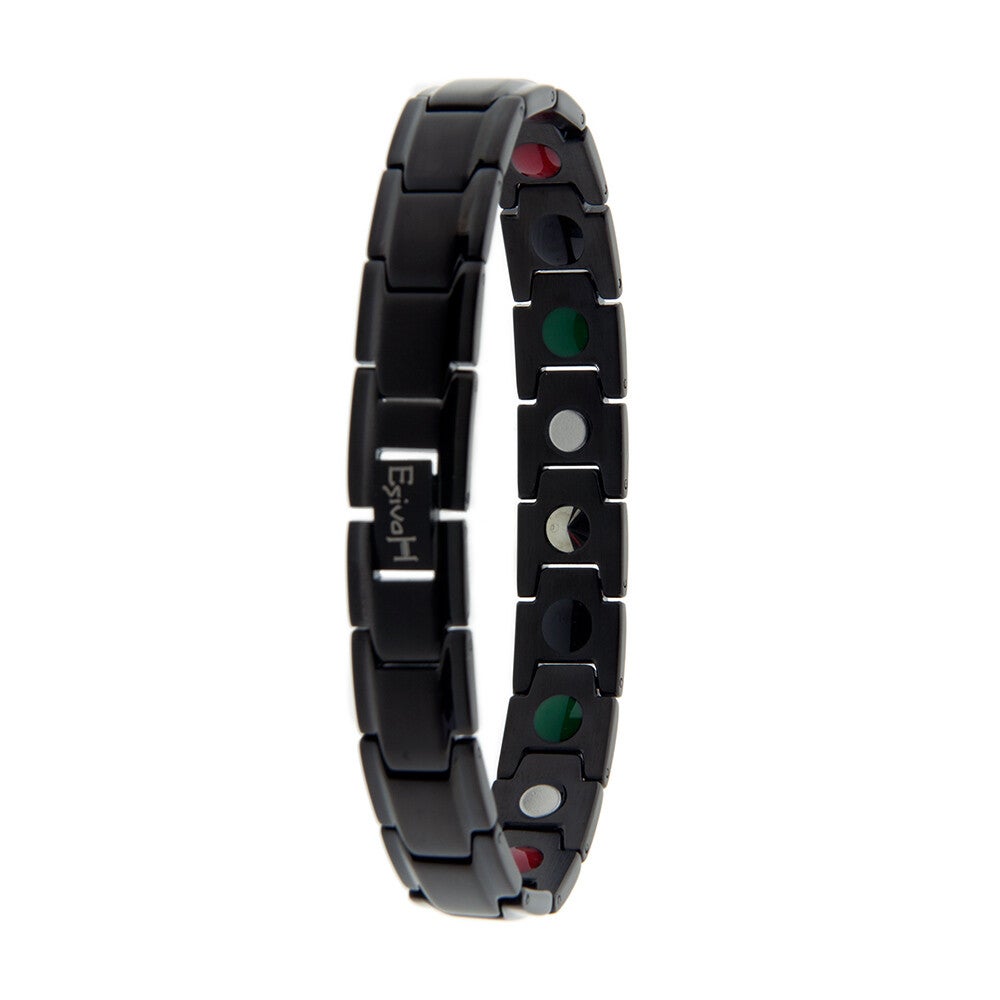 Armband gemaakt van edel (chirurgisch) staal in mat zwart staal. Elementen 4 in 1. Neodymium magneten, (Puur) Germanium, Toermalijn, Far Infra Red. Met easy link voor het gemakkelijk aanpassen van de juiste maat. Maten: XS=17,4cm, S=18,4cm, M=19,4cm, L=20,4cm, XL=21,4cm, XXL=22,4cm, Meerdere maten mogelijk.